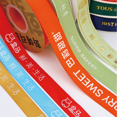 Niedrogie, niestandardowe, drukowane, logo satenowe wstążki przystępne, markowe wstążki do opakowań, prezentów i wydarzeń